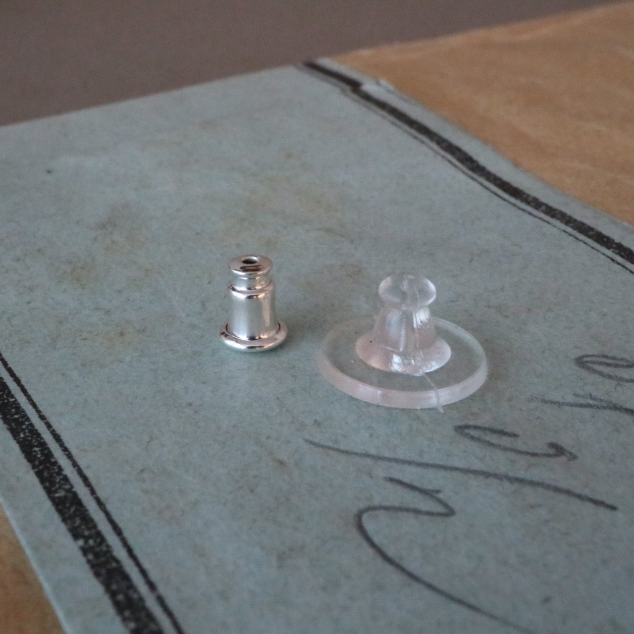 ・ピアスキャッチはベル型キャッチ(真鍮製/シルバー色)と、モチーフが大きめのため下向き防止のゴム製のディスクをお付けしています。ベル型キャッチもシリコンが中に入っているので安定感があります。どちらか使いやすい方をお使いください。