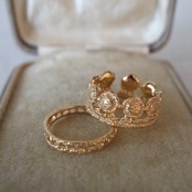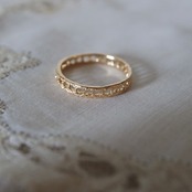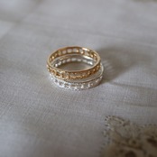 フランスのアンティークレースを「現物鋳造」という技法を用いて仕立てたリング。ブランドをスタートした当初から作り続けている人気のリングです。人気の理由はファッションのスタイルを選ばないプレーンなデザイン、着けていることを忘れてしまう軽さ、他のリングとのコーディネートのしやすさなどが挙げられるでしょうか。とにかく使いやすいので作家自身もシルバー、ゴールドメッキの両方持っています。