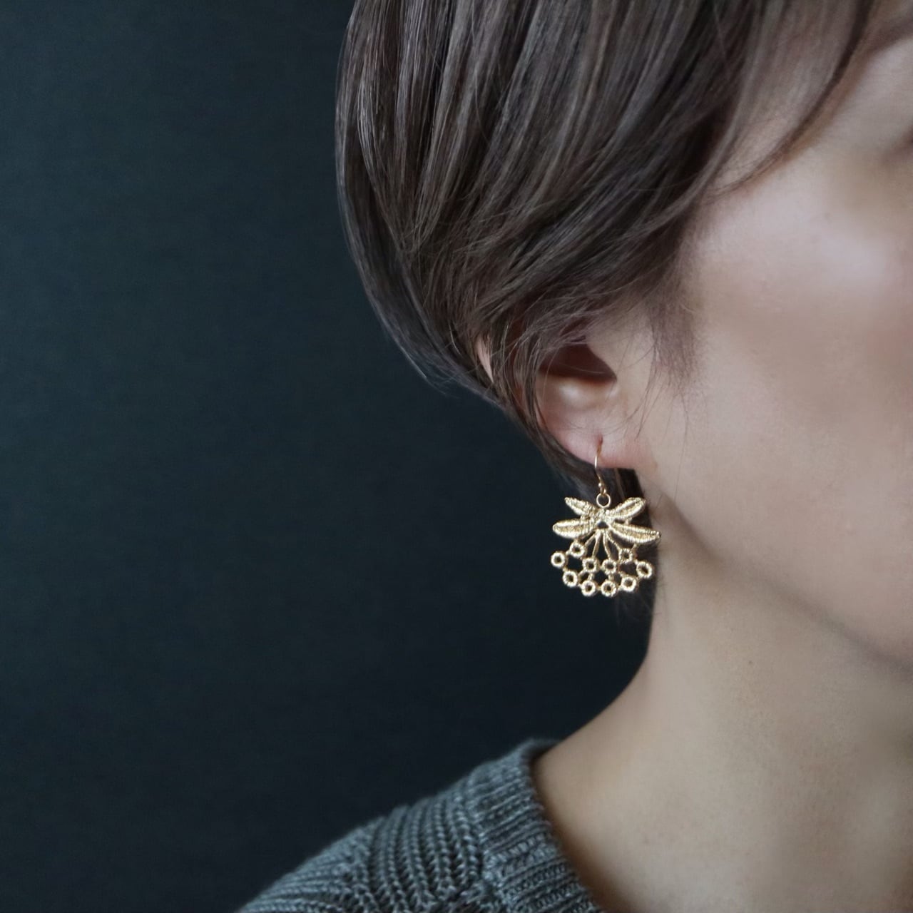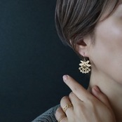 フランスのアンティークレースを「現物鋳造」という技法を用いて仕立てたピアス。たわわに実った果実を思わせるモチーフが印象的です。