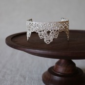 フランスのアンティークレースを「現物鋳造」という技法を用いて仕立てたバングル。一見普通のバングルに見えますが、フックでチェーンの長さが調整出来るバングルとブレスレットの中間のような仕様になっています。