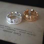 可愛い丸モチーフが行儀よく並び、小さな王冠のようなリング。切れ目があるフリーサイズリングですので、ご希望のサイズに調整してお届けします。