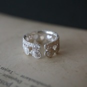 フランスのアンティークレースを「現物鋳造」という技法を用いて仕立てました。出来上がったリングは繊細な糸目も綺麗に写し取り、まるで本物のレースのよう。内側や縁を滑らかに整えていますので引っ掛かりの心配もありません。