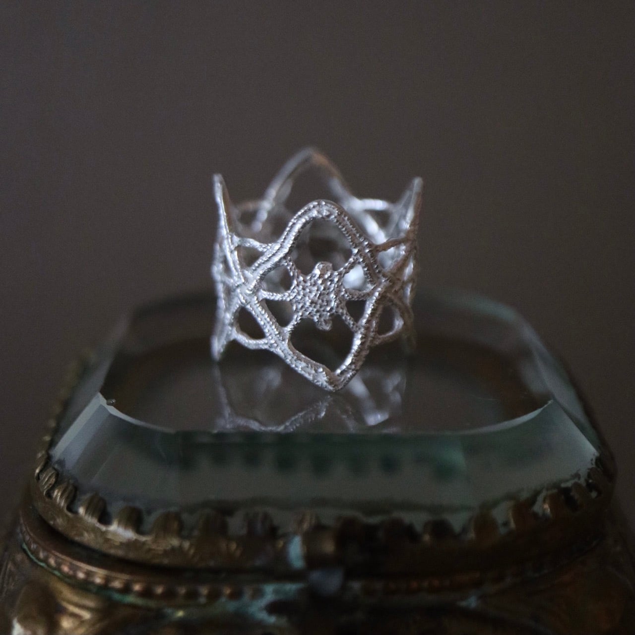 フランスのアンティークレースを「現物鋳造」という技法を用いて仕立てた新作のリング。厚みも程良く、内側も滑らかに整えているのでとても着けやすいです。今回お作りしたサイズは大きいので親指に着ける「サムリング」にすると良いかもしれません。