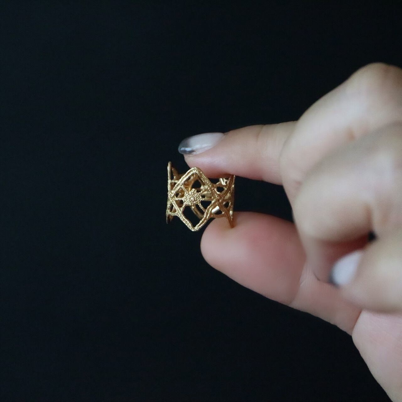 フランスのアンティークレースを「現物鋳造」という技法を用いて仕立てた新作のリング。厚みも程良く、内側も滑らかに整えているのでとても着けやすいです。印象的なデザインですが意外に他のジュエリーとも合わせやすく、きっと一軍のリングとして活躍してくれると思います。